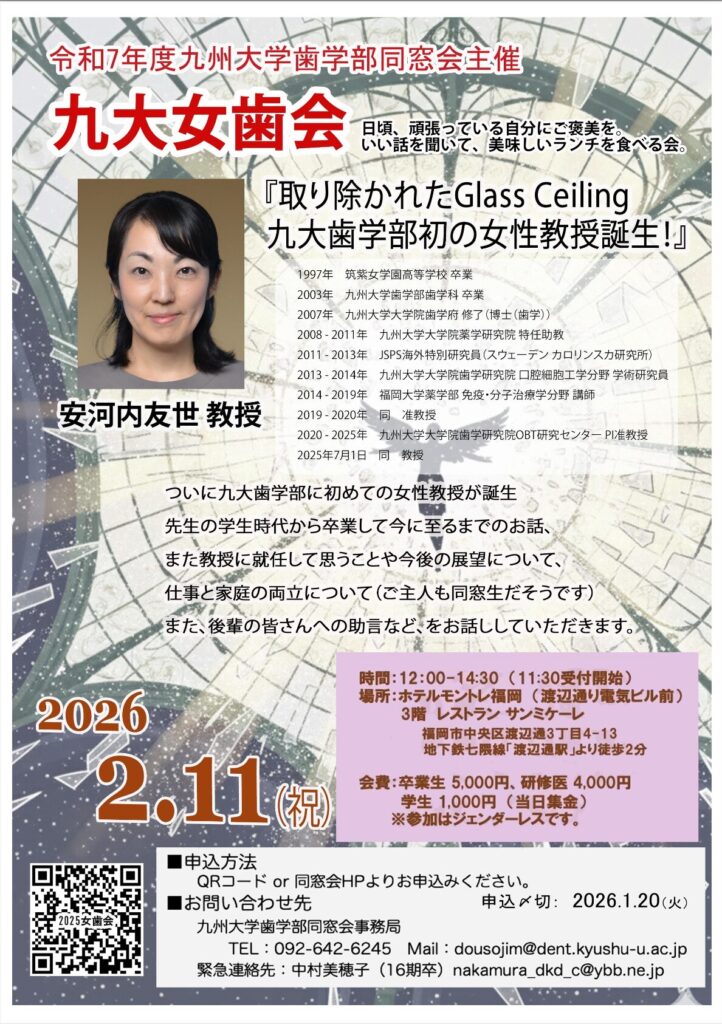 九大女歯会 開催のお知らせ(九州大学歯学部同窓会主催)