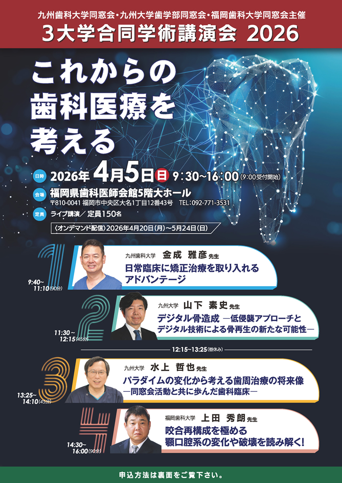2026年度の春季学術講演会は、九州歯科大学同窓会、福岡歯科大学同窓会と合同開催することになりました。